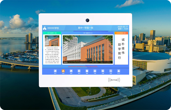 校園電話班牌能夠?qū)崟r(shí)顯示學(xué)校的各類信息,如學(xué)校名稱、Logo、班級(jí)名稱、班主任、班級(jí)人數(shù)、當(dāng)天考勤統(tǒng)計(jì)、時(shí)間、天氣等,為師生提供便捷的信息查詢服務(wù)。